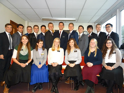 | One of the districts in our zone. This was at district meeting- unfortunately we weren't able to make it to the other district in the zone's district meeting but this is half of our zone! And yea I'm wearing elder Hesen's glasses just for fun I don't really know why |